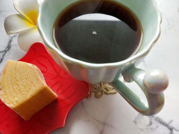 ホットコーヒーと冷やしたバームクーヘン合います!ほっこりおやつ時間☆