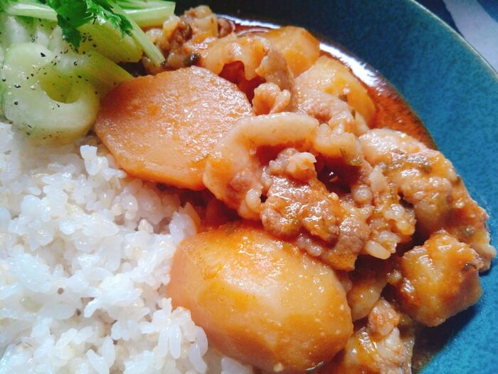 本場では豚の背骨とじゃがいもを煮込んだ鍋をカムジャタンとしますが、豚の背骨をカムジャ骨とも言うためカムジャタンと言われている説もあるそう。