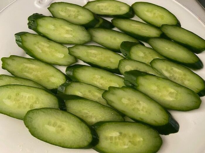 きゅうりは薄く斜め切りにして器に重ならないように並べる