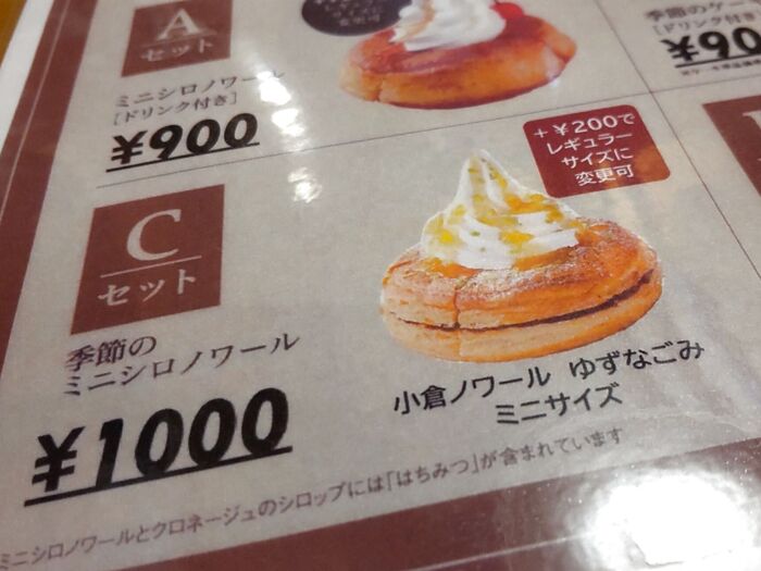 新作のデザートセットは、定番のシロノワールよりも100円アップになります