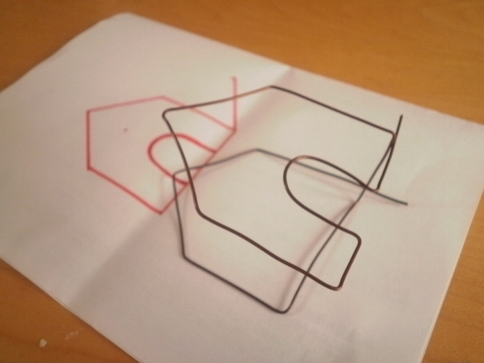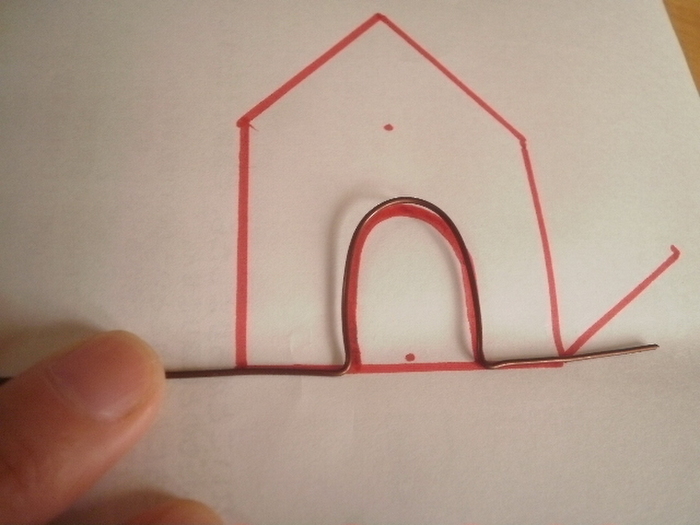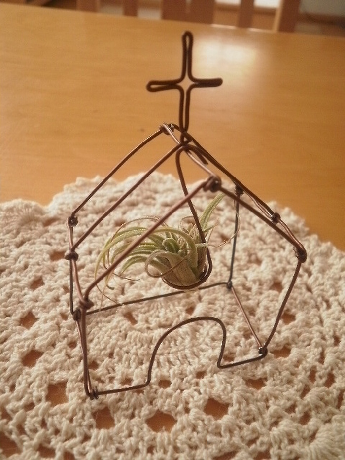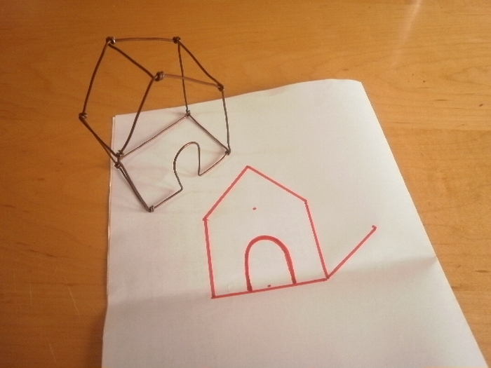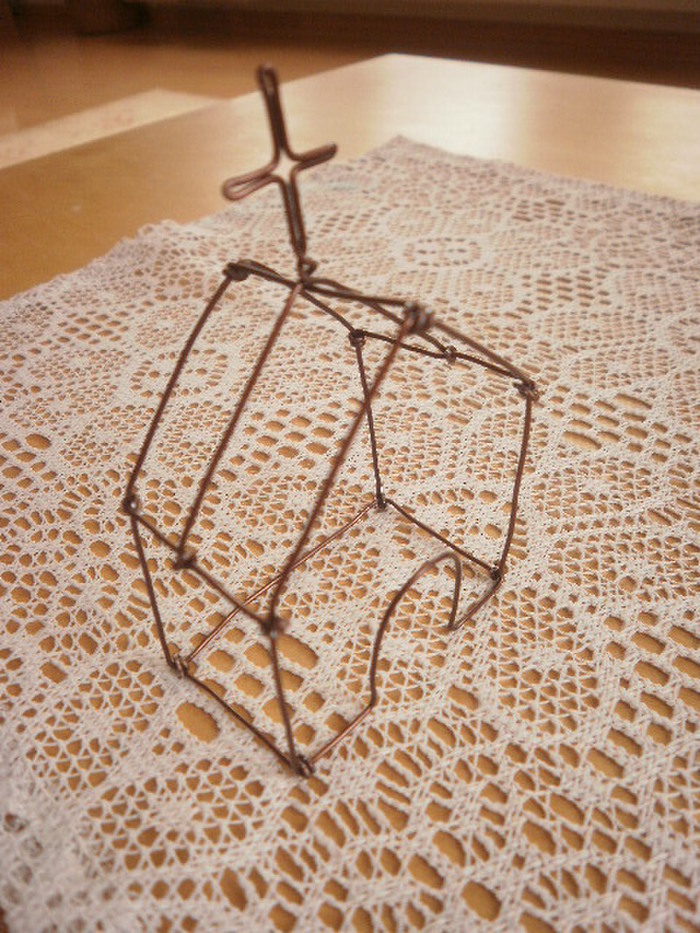 屋根などの部分を短いワイヤーでつないで形を作ります。
