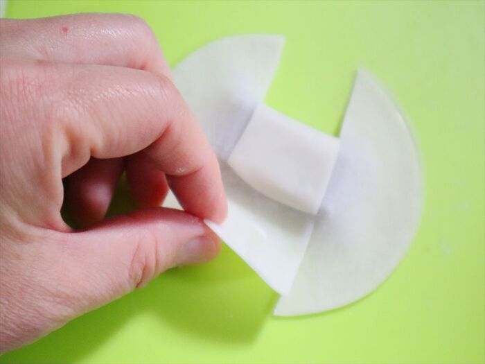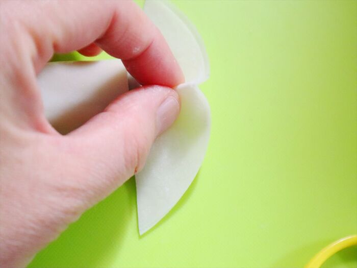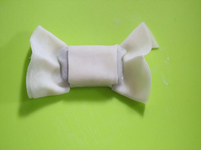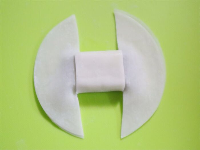 両側の皮の中心をつまんで折り目をしっかり付けましょう。