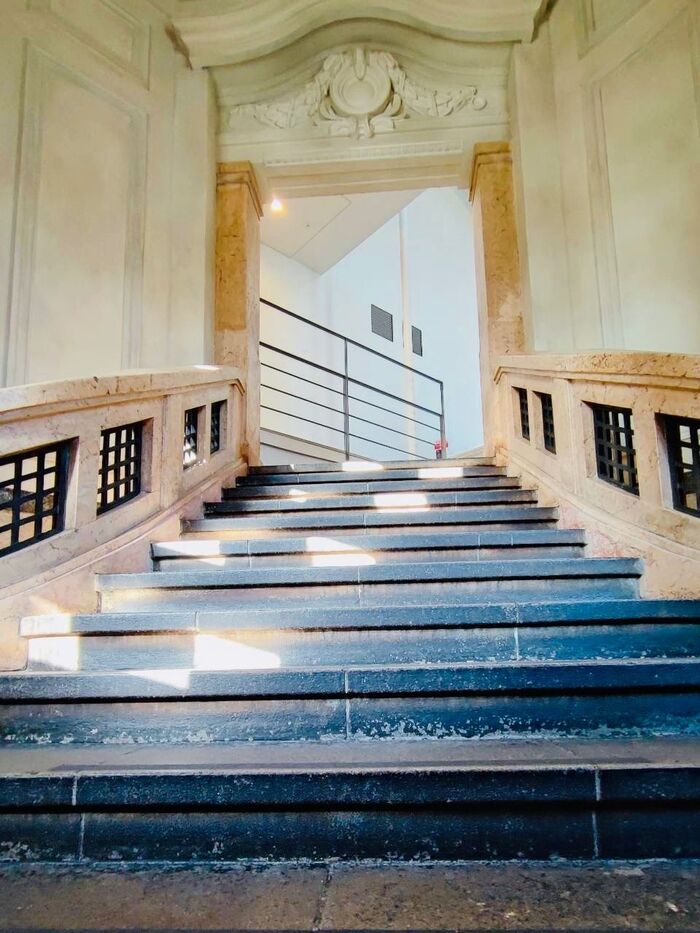 回り階段を上がっていくと、素敵なカフェがありますよ。