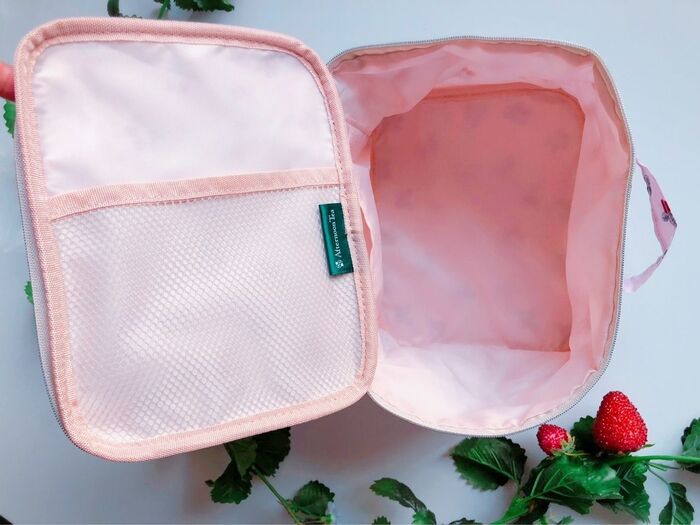 内側にポケットが2つあり、フタ部分はメッシュで使い勝手も良し♡