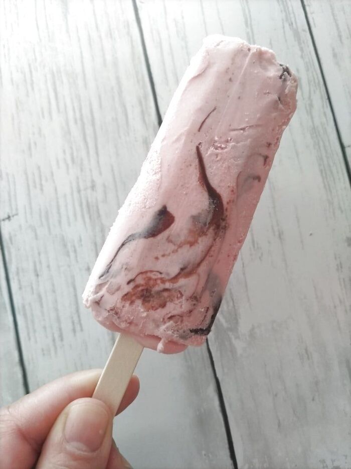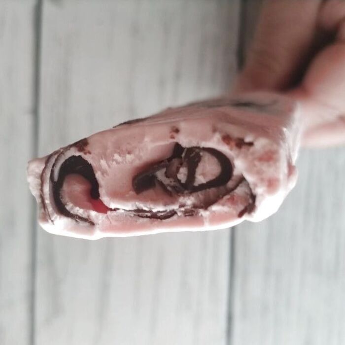 爽やかなスカイベリーアイスの中に、チョコがパリッとゴロっと入っていて1本で満足感あり!!