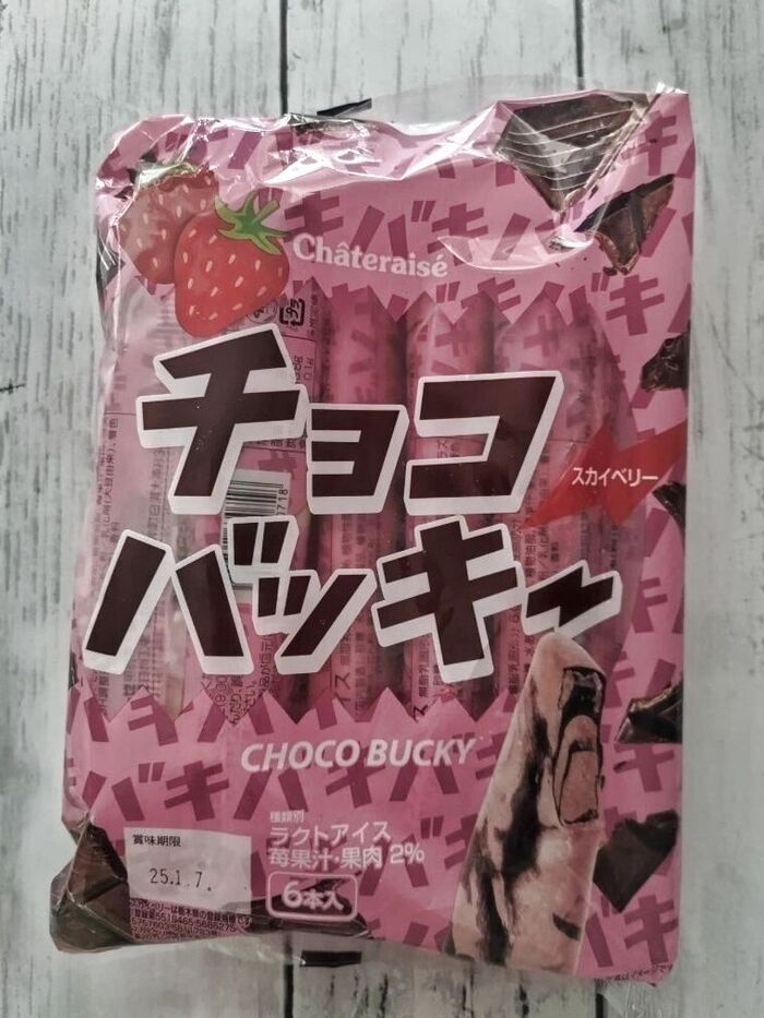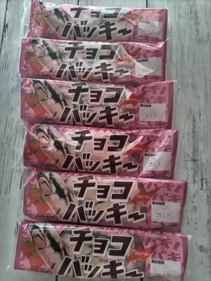 チョコバッキーのバニラとチョコは、食べたことありますが、スカイベリーは、初めて見ました!!
