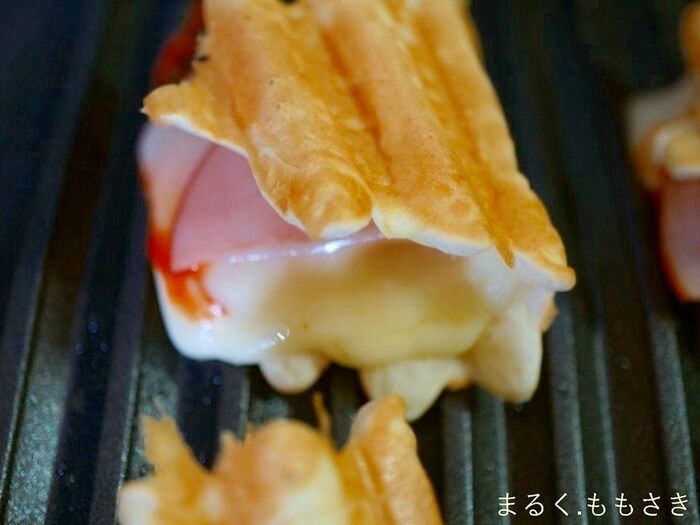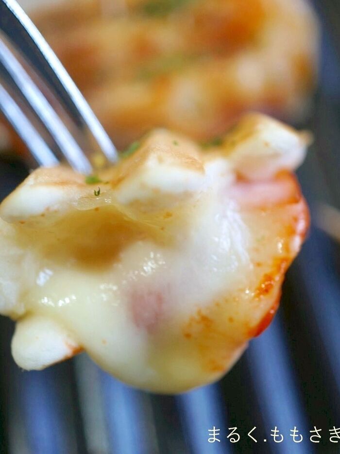チーズが流れ出た部分もまたカリッと香ばしく焼くと、おいしくいただけます。