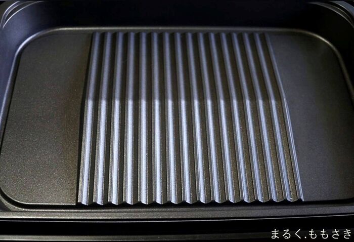 こちらは、「深型プレート」「傾斜溝つき焼肉プレート」「区切り線つきたこ焼きプレート」の3枚のプレートがついていました。