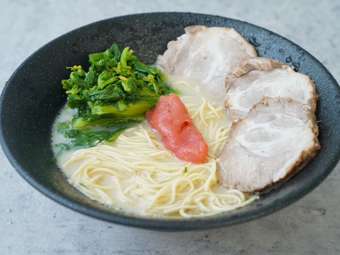④①のお湯でスープを作り、麺を入れて具材を乗せる。