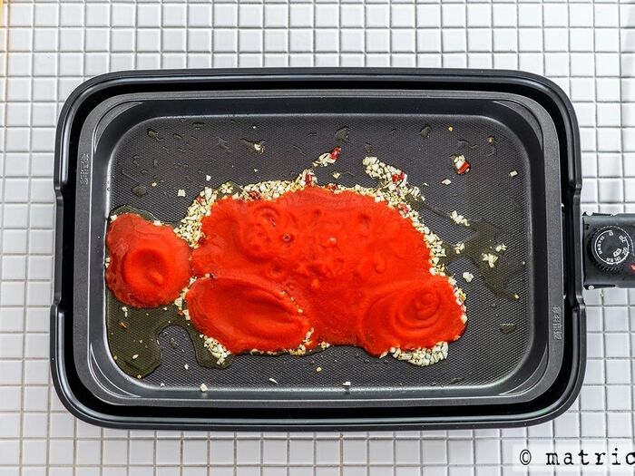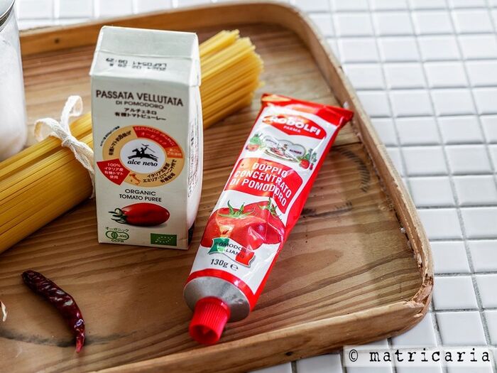ポイントは、「トマトピューレ」と「トマトペースト」を両方使うこと。