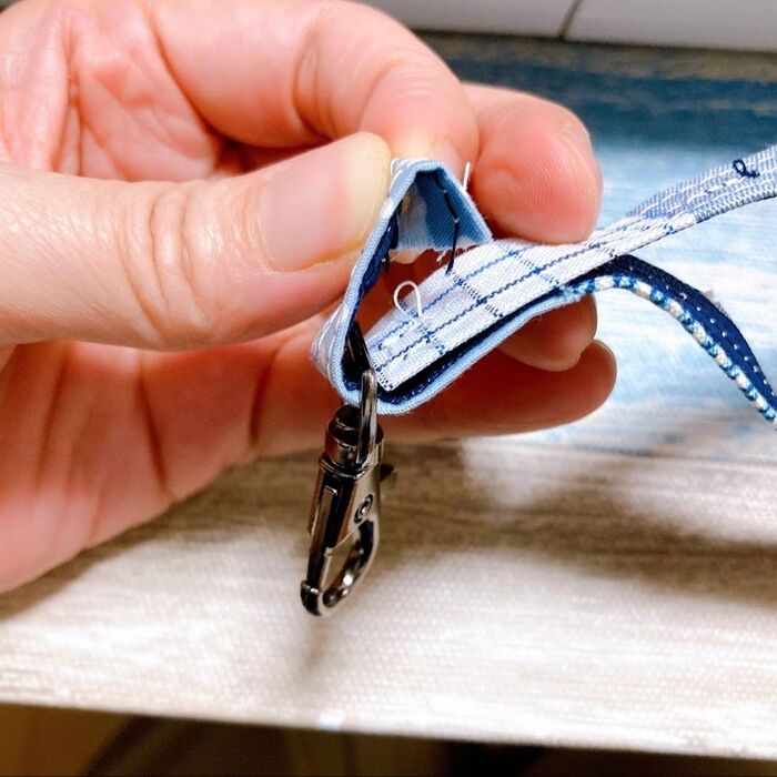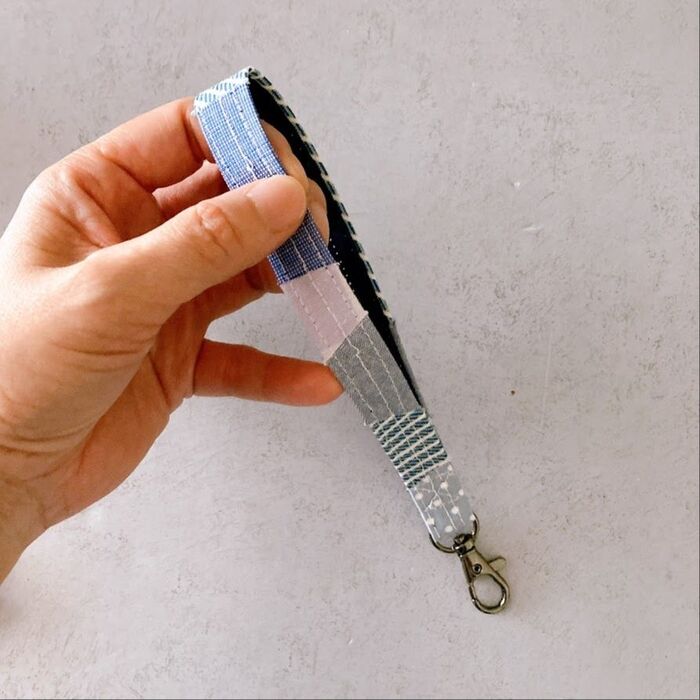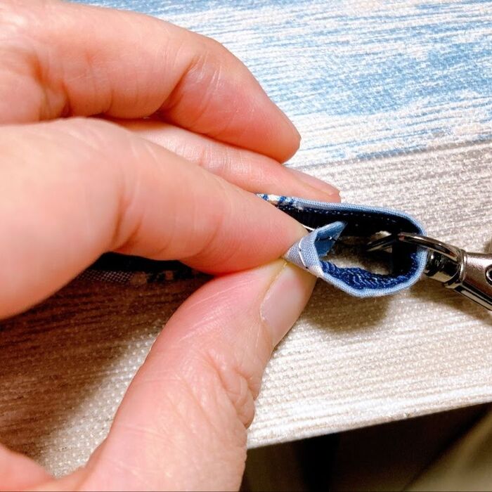 布くずがたくさん集められない場合は、ハンドストラップにするのもおすすめ。つなげた長さが30cmくらいあればOKです。