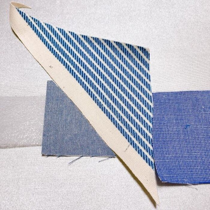 布くずは端のほつれをきれいに切り落として、テープ状に切った接着芯に布くずを貼ります。