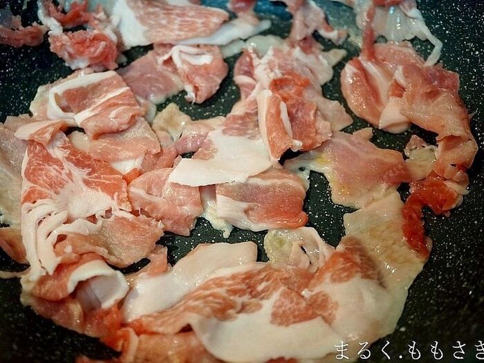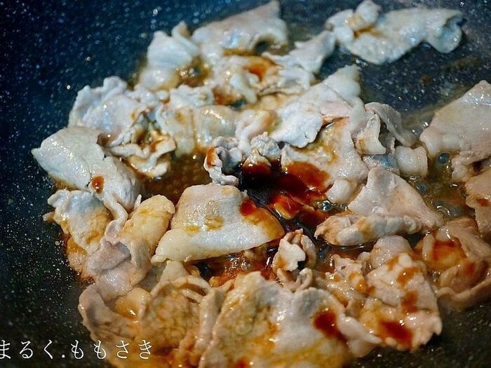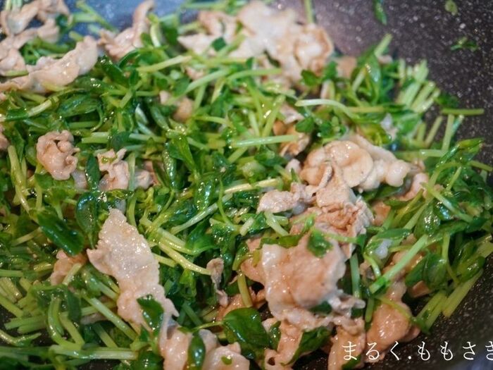 ⑤豆苗を入れ強火で30秒ほど全体を炒める。