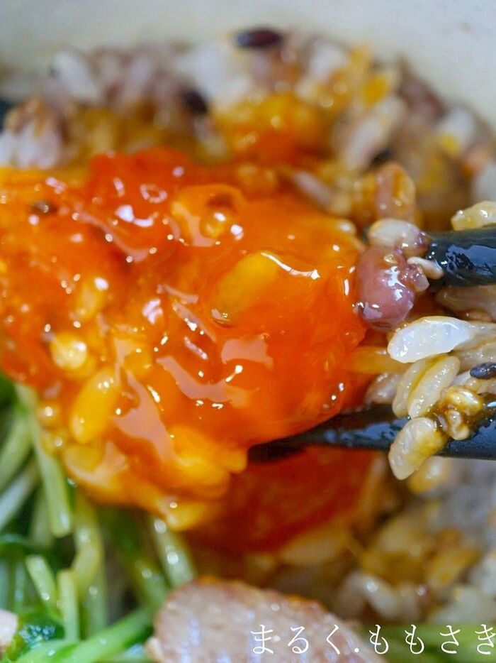 少し卵黄が固まりご飯にまとわりつく~~家族もドハマり中の簡単丼です