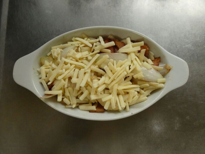 耐熱容器に入れてピザ用チーズを乗せ、トースターでチーズがとろけるまで焼いたら完成!