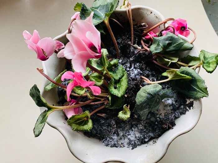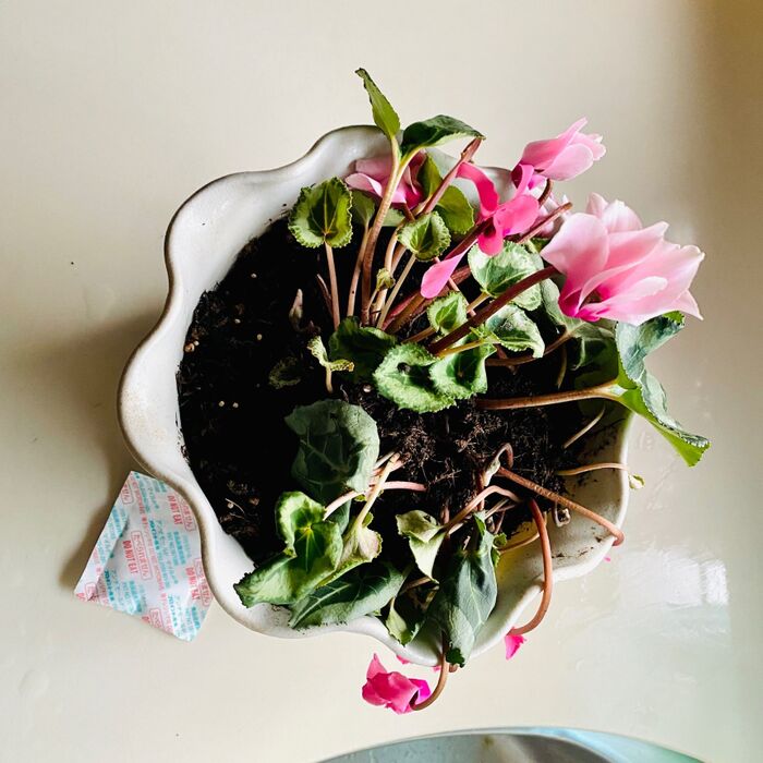 なんと、次の日、あんなに元気だったシクラメンが元気がなくなってしまいました。