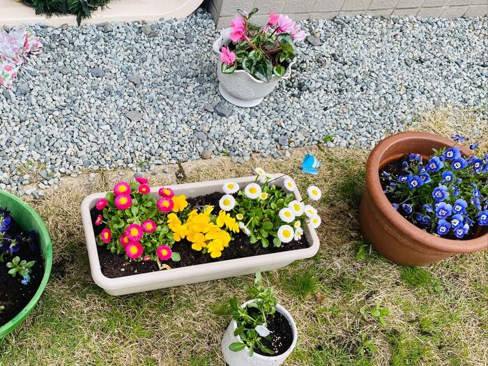 近くに可愛い忘れな草も咲いていたので、寄せ植えしました。