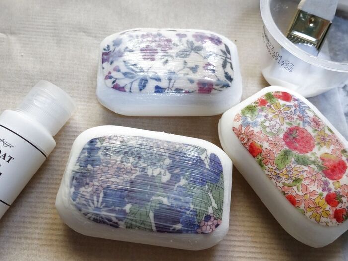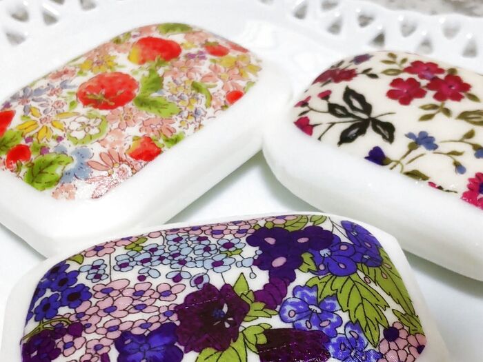 〇ほんの少しのはぎれで、すっごくお洒落な石鹸に!「デコパージュ石鹸」凄く良いですね♪