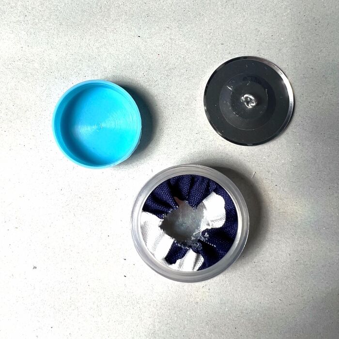 くるみボタン裏の真ん中の金具が、もし邪魔になるようなら横に倒してください。