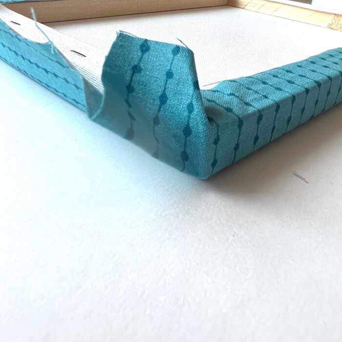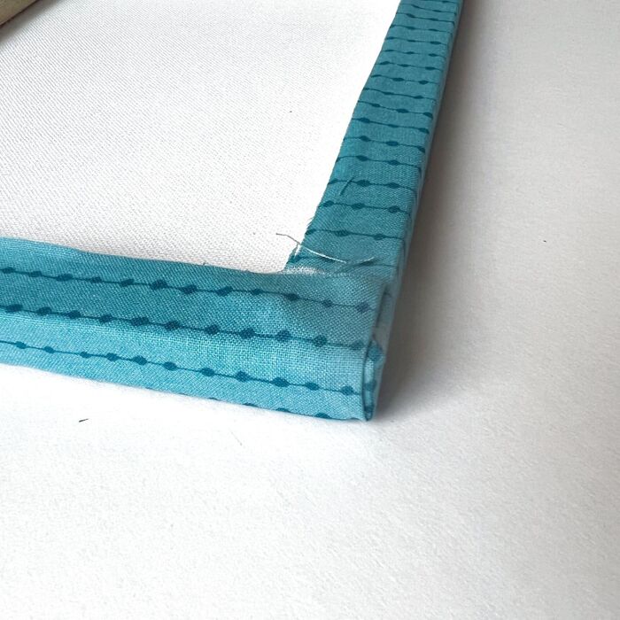 布を貼るときは、引っ張りすぎて柄が変に歪まないように注意です。