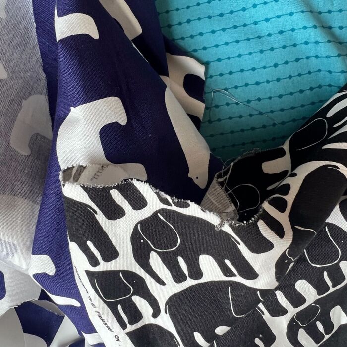 約長辺33cm×短辺28cmの布が必要です。洋服ではなかなか勇気のいる柄でも、小物の場合は逆に楽しいですよね。