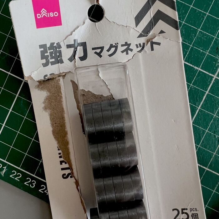 ビリビリ破いてますが、こちらのマグネットを貼ればフック無しの出来あがりです。