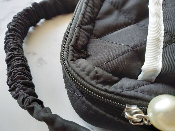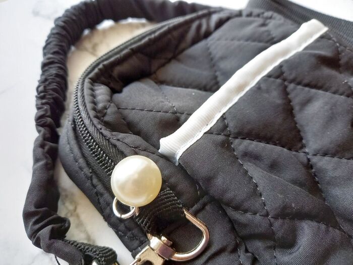 ファスナーの開ける所が大ぶりのパールになっていて、
