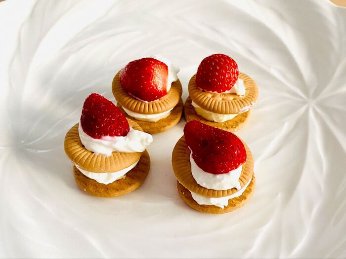 ミニビスケットをサンドして、オイコスをスプーンですくって乗せます。