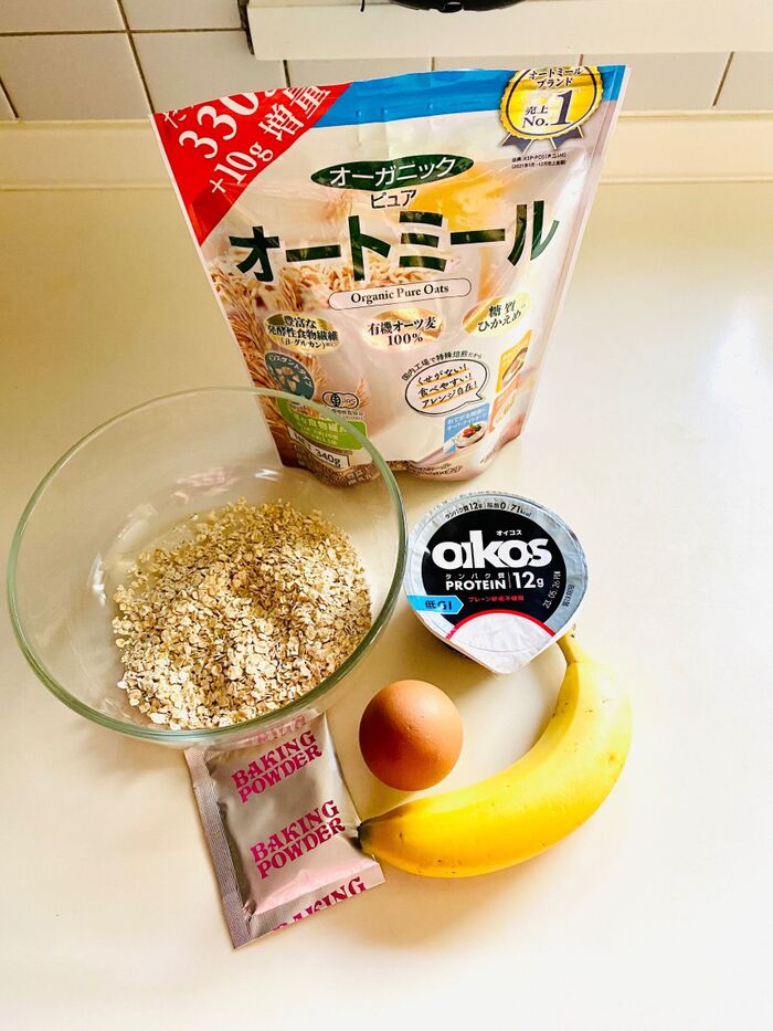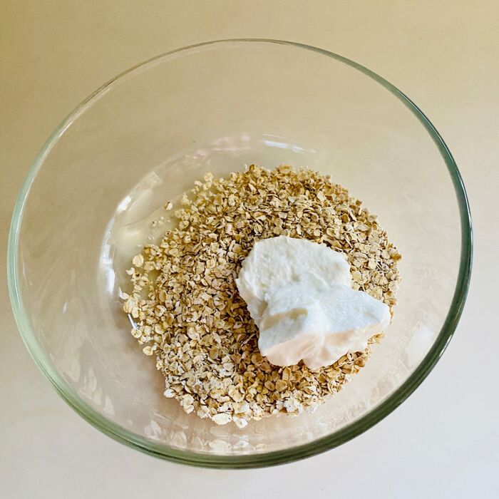 ボウルにオートミール、オイコスを入れよく混ぜます。
