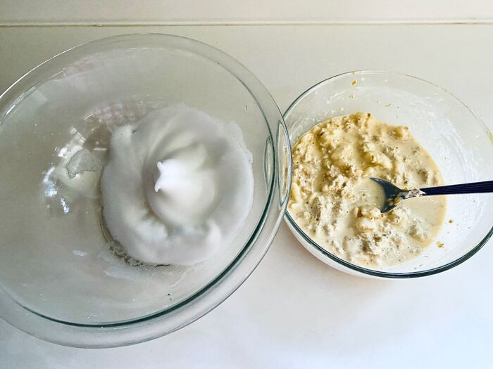 卵黄を加えよく混ぜます(卵白は取っておく)。