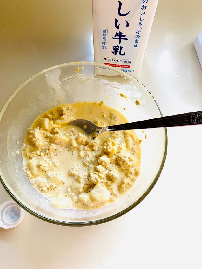 牛乳を加えよく混ぜます。