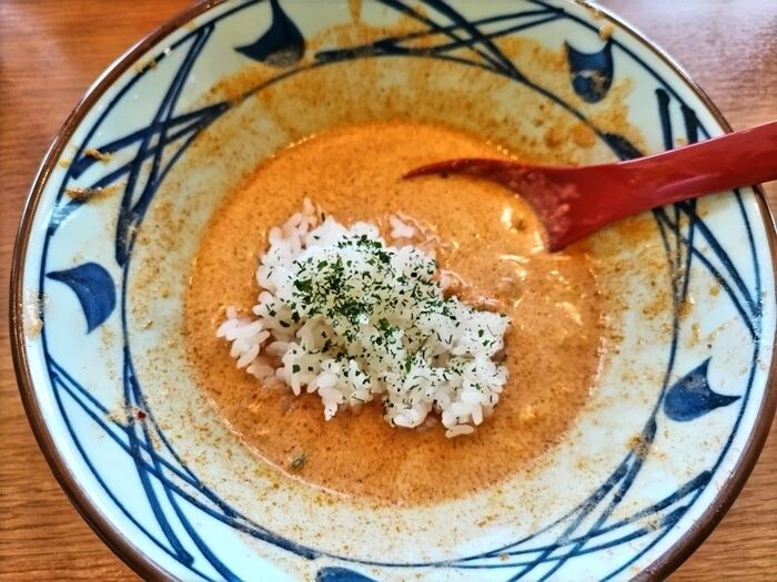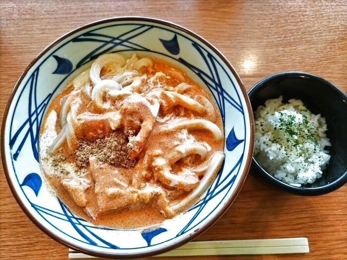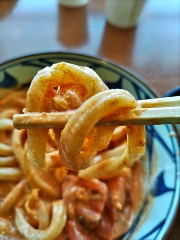 もちもちでのど越しの良い讃岐うどんが、美味しい!!食べ進めていくと…マイルドと思っていたカレーうどんが、ピリピリカイエンペッパー効いてる!!