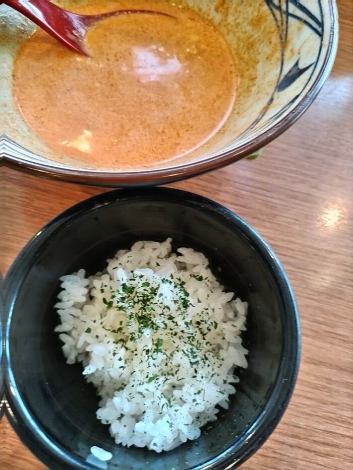 想像していたカレーうどんとは違って、カレー臭がプンプン香るわけでもなく、色もマイルドな色でした。上にかかっていたのは、かつお粉だと思います。一口ご飯が、とても楽しみ!!