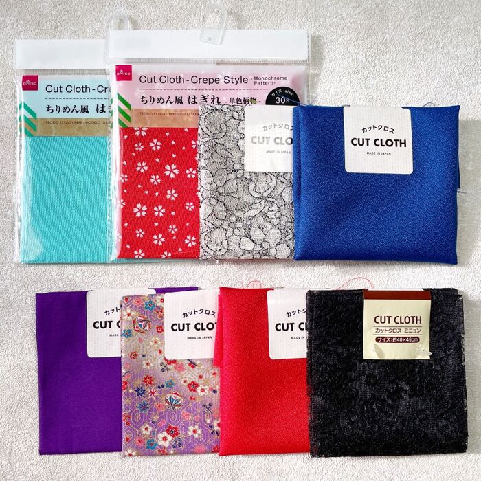 これは硬くハリのあるセリアのコットン生地の着物柄ハギレです。