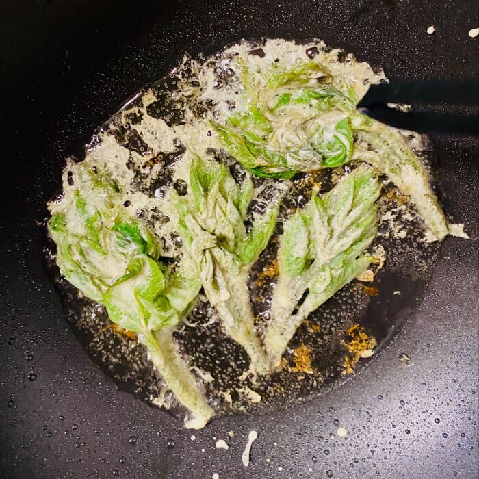 うどの葉の部分は、サッと洗ってから天ぷらも美味しいですよ。癖が気になりませんよ。