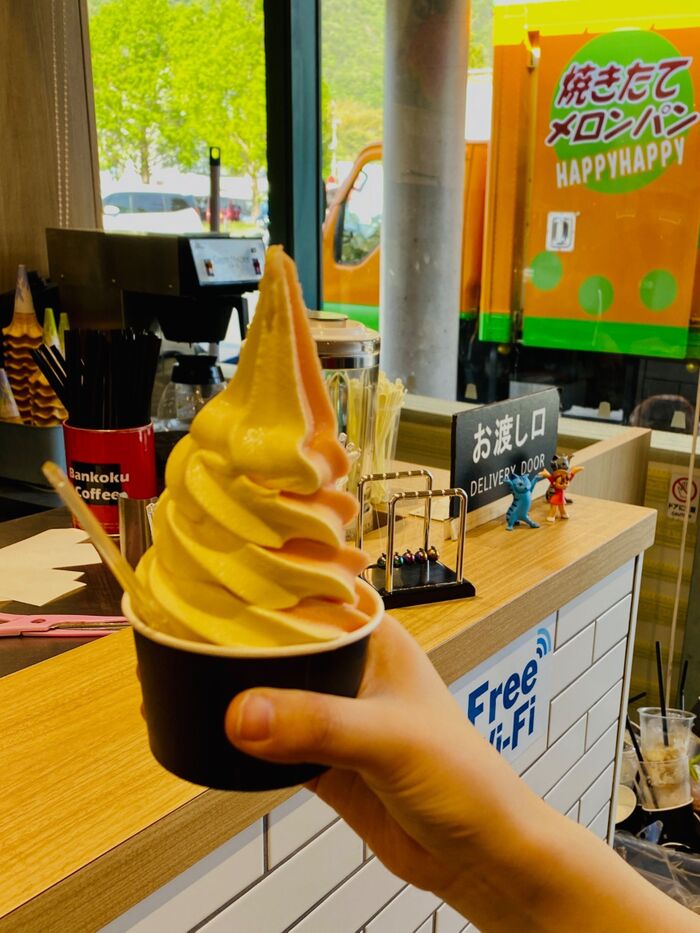 フードコートでは、さくらんぼとバニラのミックスソフトクリームも販売されていますよ。