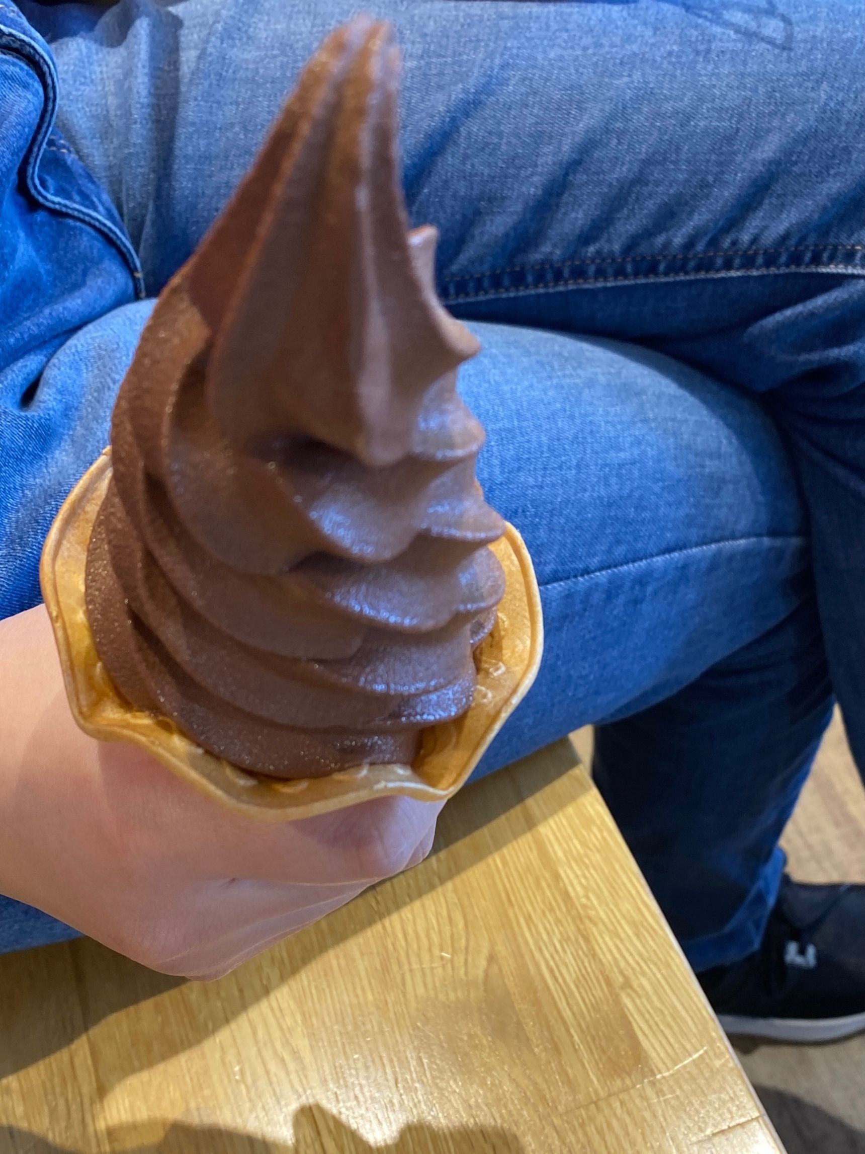 チョコレートソフトクリームもここまでたっぷり入って400円です。