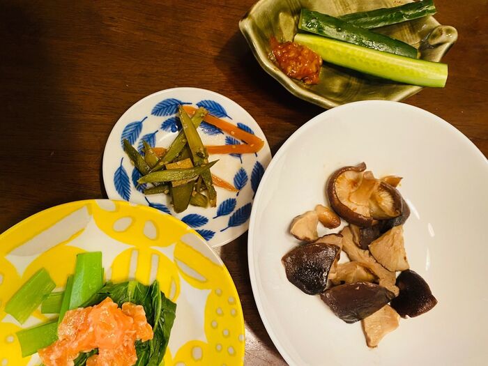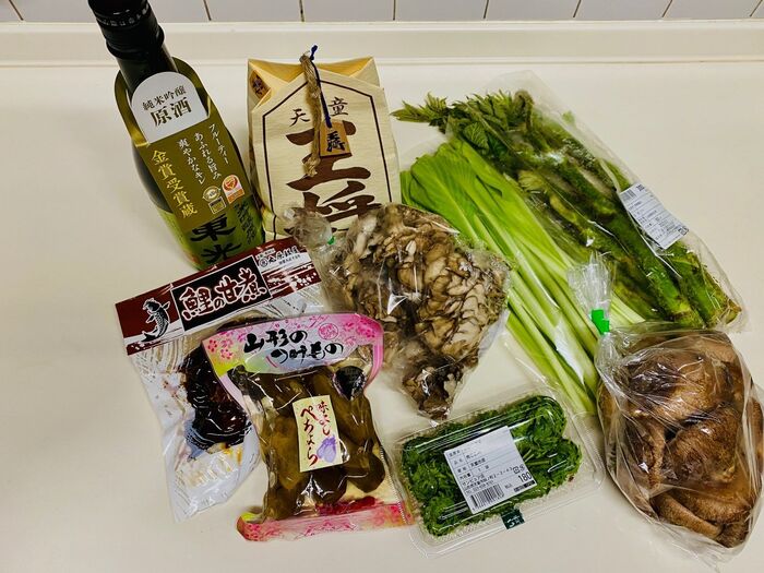 山菜は、こごみ、うど、うるいを買い、しいたけ、舞茸なども買いました。