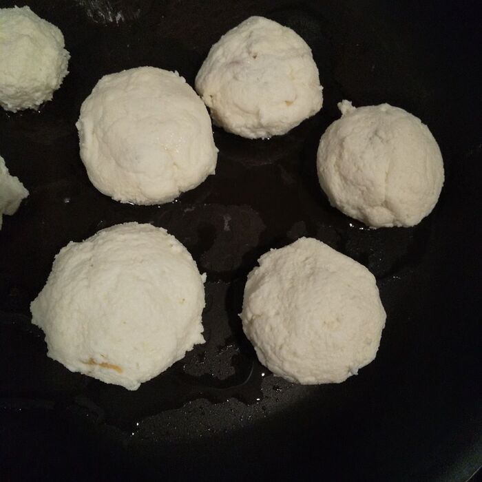 耳たぶ程度のやわらかさが目安です。使用する豆腐の水分により米粉や豆腐を加え、量を微調整してください。