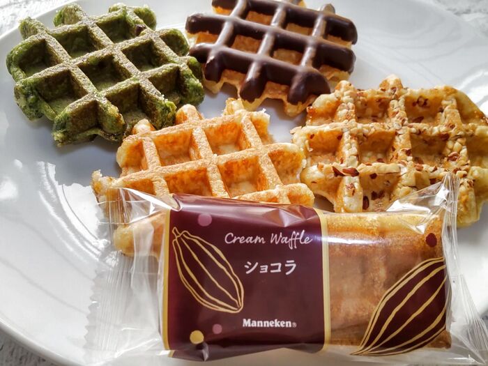 「マネケン」のアーモンドワッフルとクリームワッフルのショコラ。