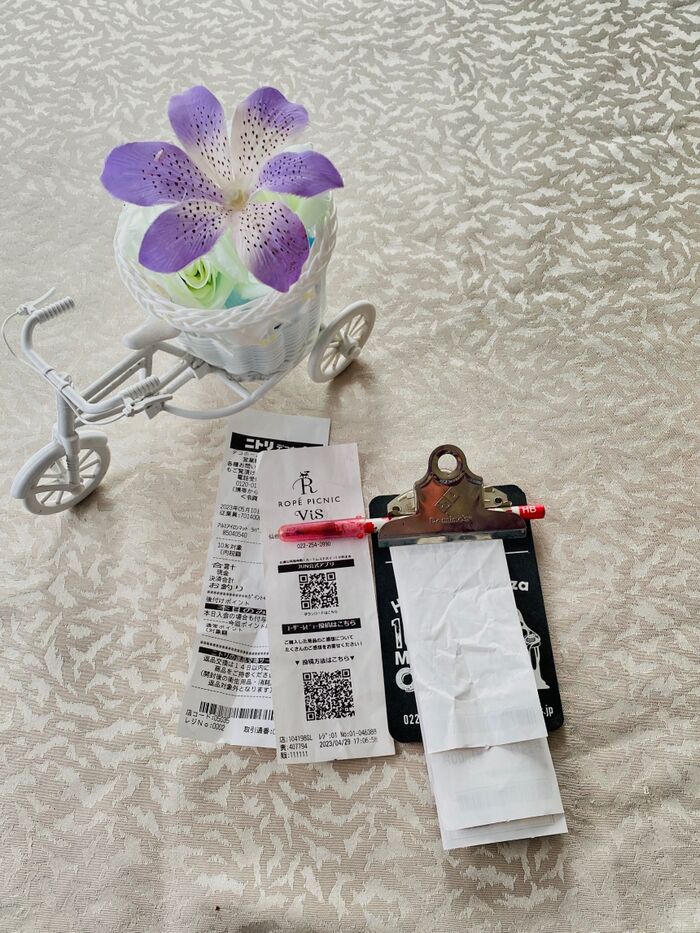 レシートをまとめて収納して、簡単にメモ帳に使っています。メモ帳なので誰に見せる訳でもないのでこれで十分かなーと思います。