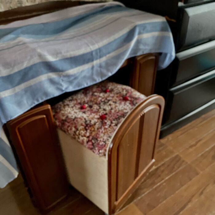 キャスター付きで物入れ付きの椅子はお値段がするので、これで十分だと思います(*^◯^*)