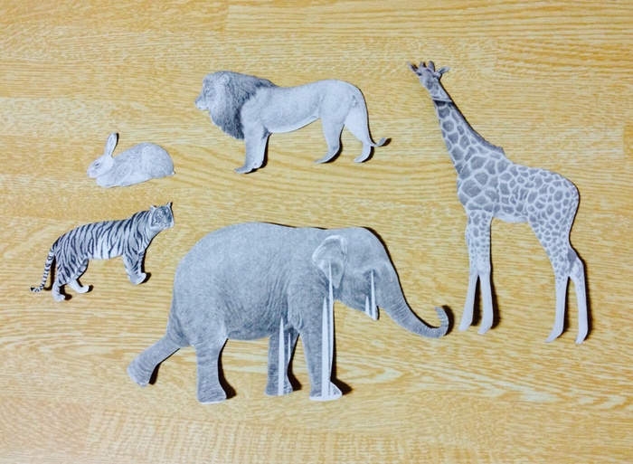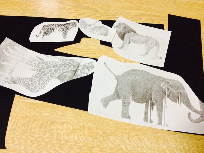 コピーするときは基準の動物を一つ決め、その動物の大きさと比較しながら拡大したり縮小するといいと思います。