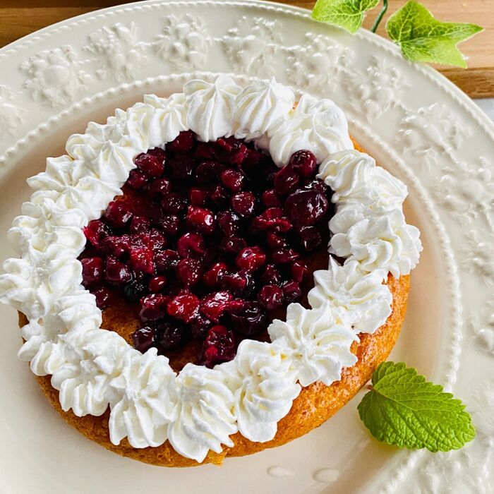 14.せっかくなので、自家製ブルーベリージャムとホイップクリーム、レモンバームでデコレーションしました。