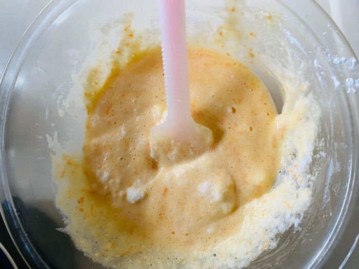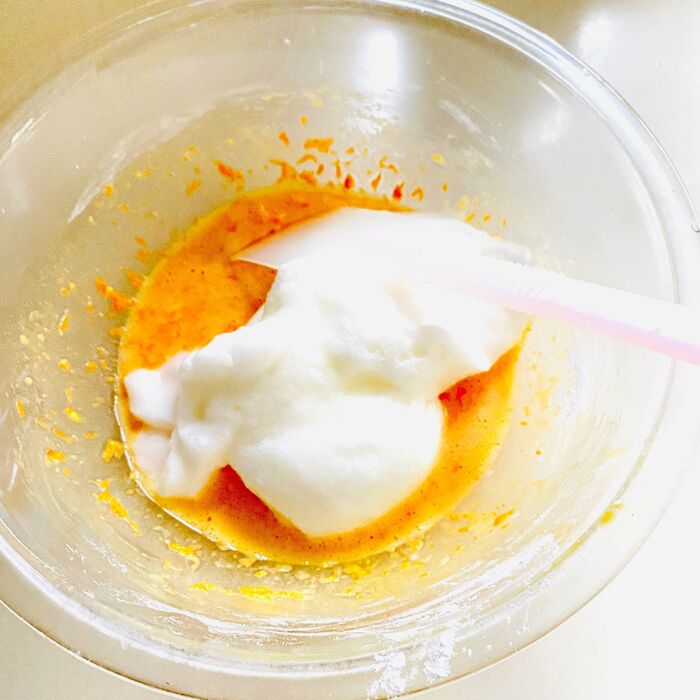7.卵白を加えよく混ぜます。