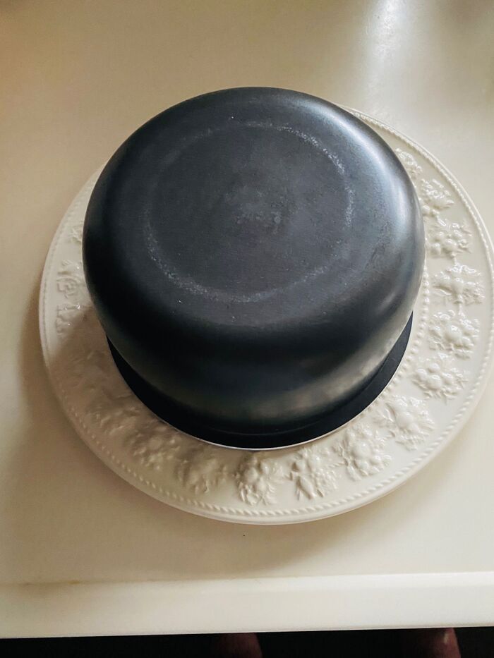 13.鍋つかみをして、お皿をひっくり返します。
