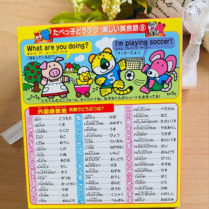 パッケージの裏面に外国語教室・英語でどうぶつが記載してありますよ。