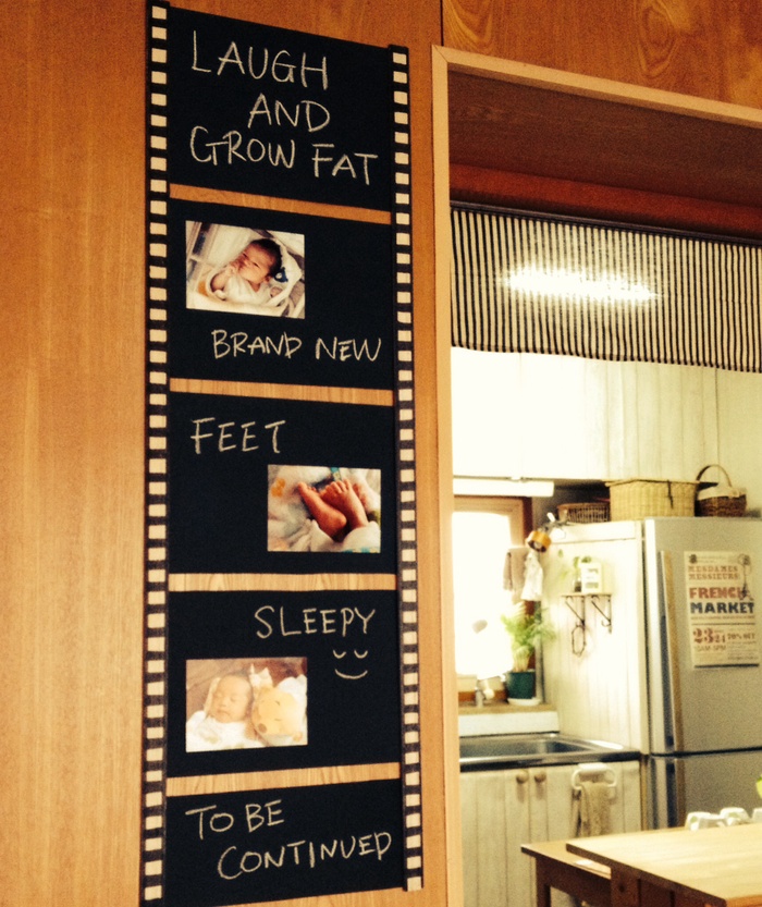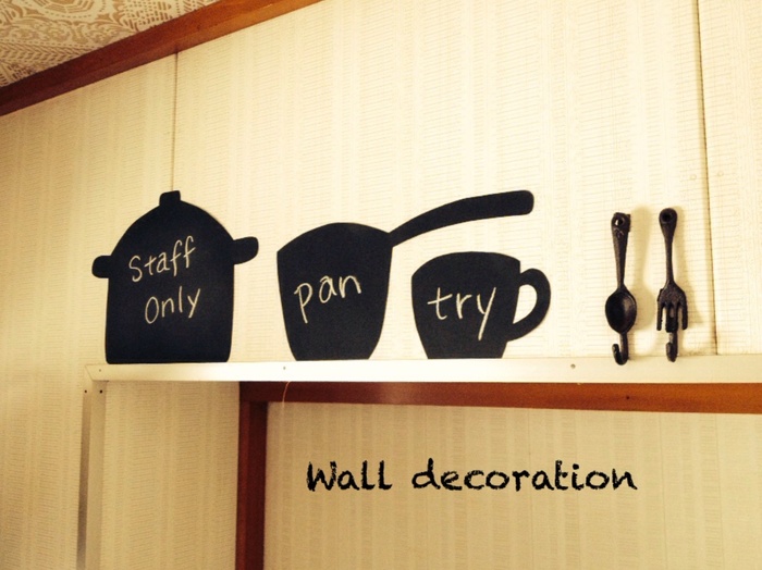 こちらは鍋やカップの形に切って、チョークで文字を書き、キッチン横の部屋の入り口に貼って楽しい雰囲気にしてみました♪