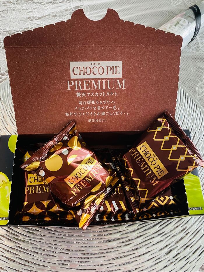 さらに、マスカットチョコレートでコーティングされて、今までにないチョコパイの完成です。