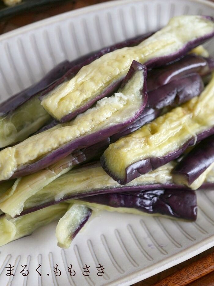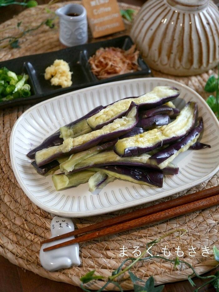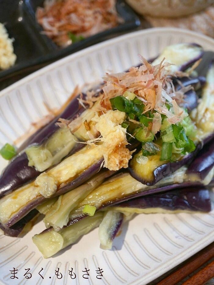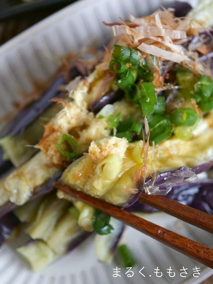 丸ごと茄子をチンするだけなので簡単に作れて、何か足りない時の1品にも便利。